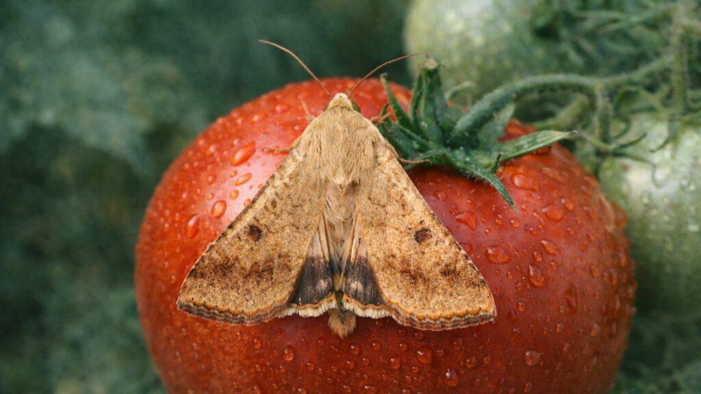 Esta plaga es conocida por causar daños significativos en cultivos de tomate y otros vegetales. El control ecológico puede incluir el uso de trampas de feromonas que interfieren con la reproducción de los machos, reduciendo así la población.