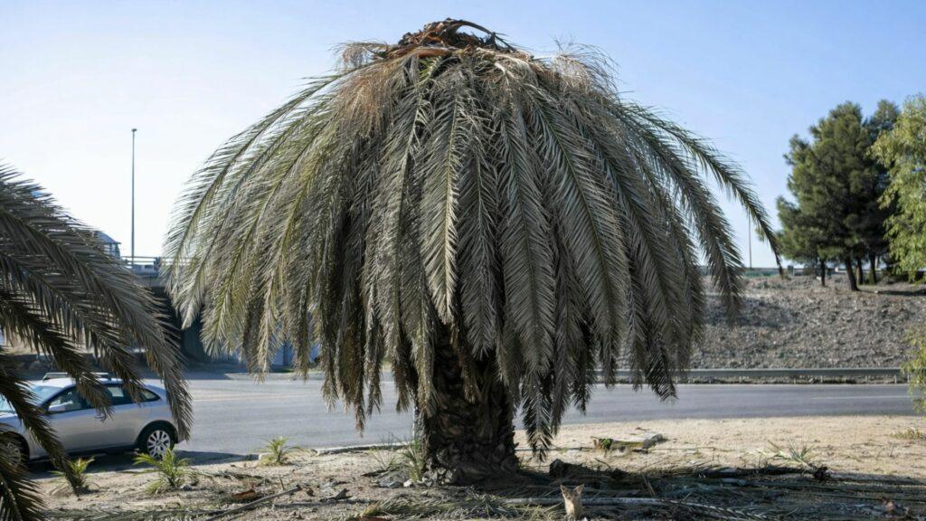 Una palmera estresada (sequía + calor + viento) es más vulnerable. Riega bien, sin encharcar, y abona con cabeza. - No “pelar” la palmera.
